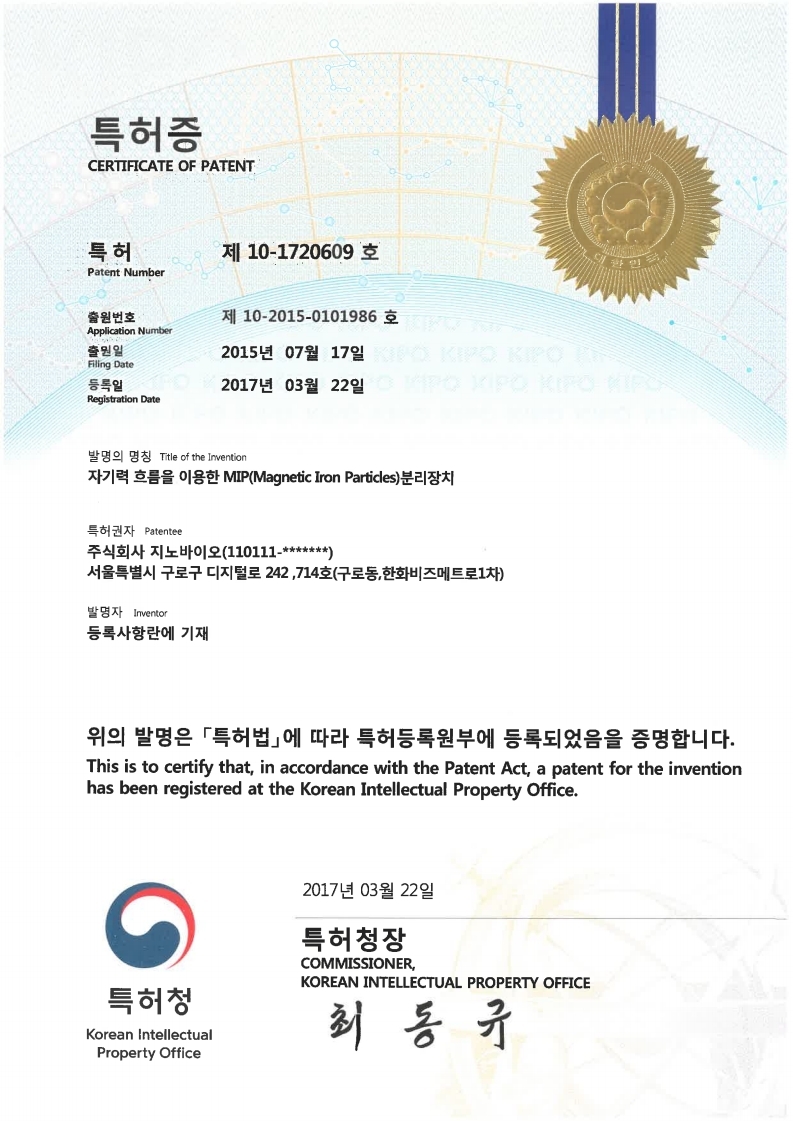 Certicficate of Patent #10-1720609